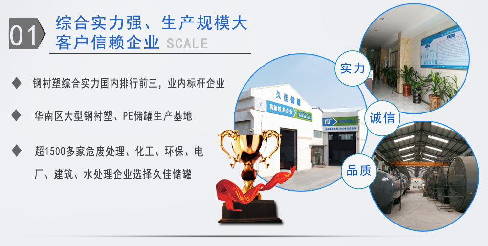 東莞市久佳防腐設(shè)備有限公司是華南地區(qū)大型規(guī)模的防腐環(huán)保儲(chǔ)存設(shè)備制造廠家,公司生產(chǎn)廠房達(dá)8000余平方米,集研發(fā)、生產(chǎn)、銷售于一體,有一支技術(shù)精湛、設(shè)計(jì)能力強(qiáng)的專業(yè)隊(duì)伍。國(guó)內(nèi)領(lǐng)先的生產(chǎn)工藝和完善的檢測(cè)設(shè)備,為產(chǎn)品提供了優(yōu)良的保證。產(chǎn)品廣泛應(yīng)用于石化、環(huán)保、釀造、水處理、化工、醫(yī)藥、食品、煉油、發(fā)電等行業(yè),精益求精,品質(zhì)久佳!
